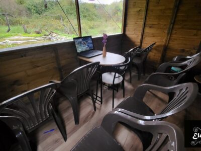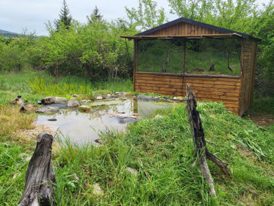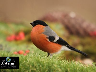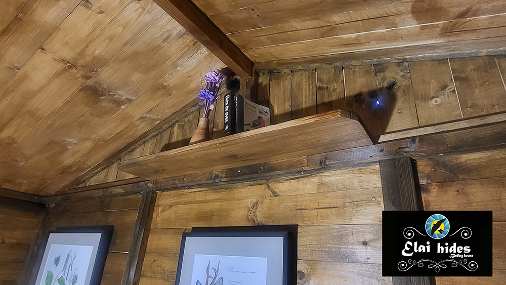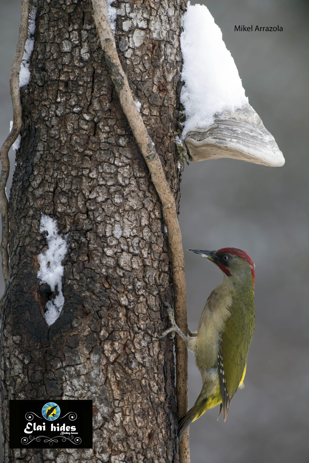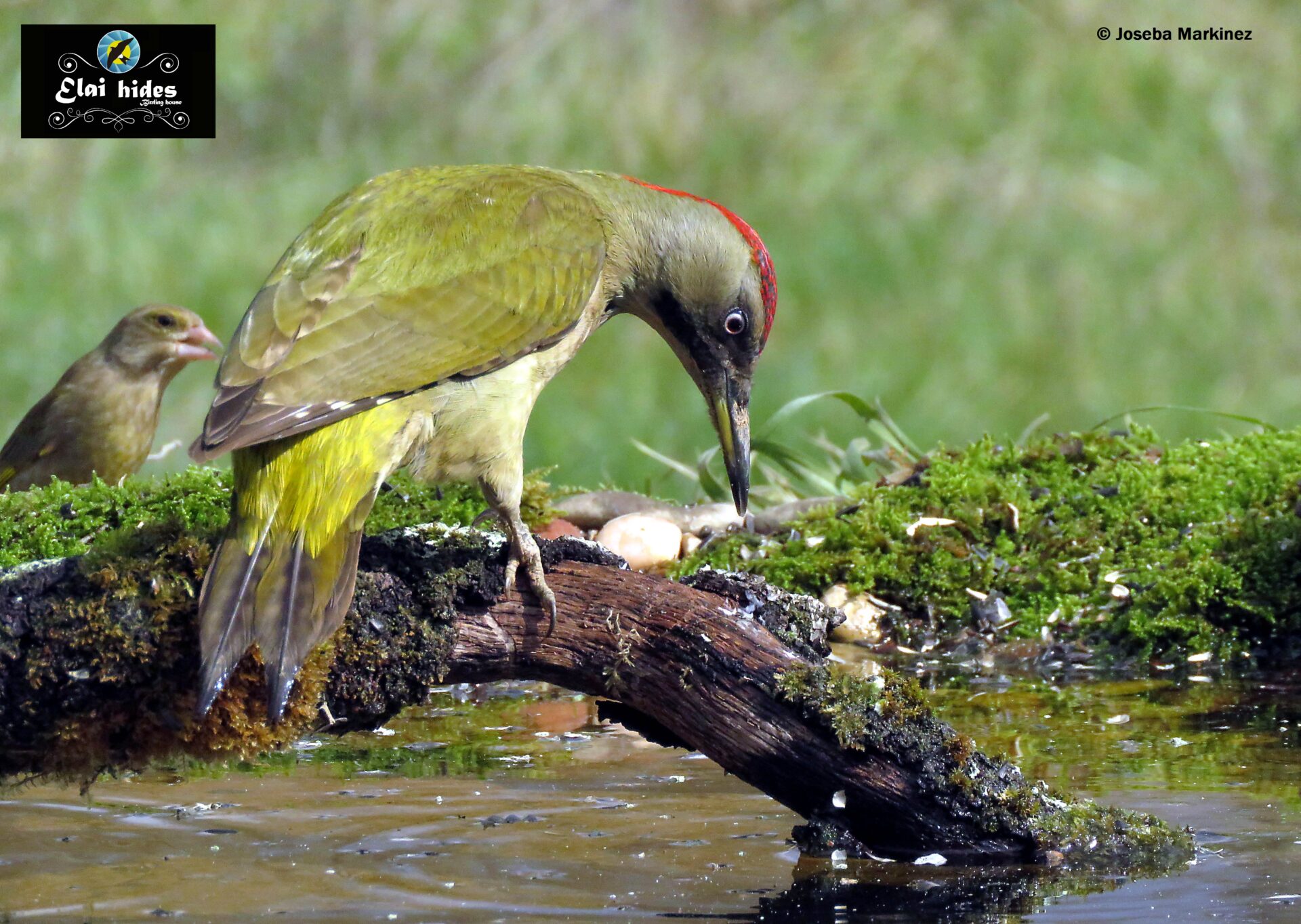 Dispone de distintos posaderos que se pueden colocar a gusto de cada uno, ramas con líquenes y musgo junto a una amplia charca de agua para hacer reflejos.