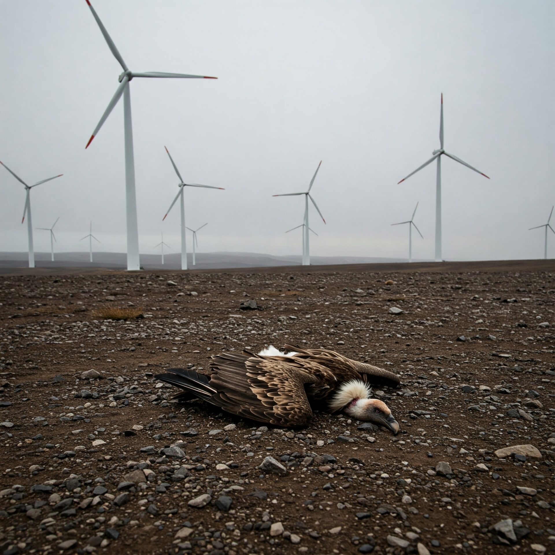 Cada central eólica lleva además consigo una línea de evacuación (cables aéreos) donde éstas grandes aves colisionan o se electrocutan. Casi siempre el único criterio de las ubicaciones de energía eólica es el económico a corto plazo, es decir, se ponen donde anda mucho viento. Lo demás importa bastante poco y se consideran daños colaterales perfectamente asumibles.